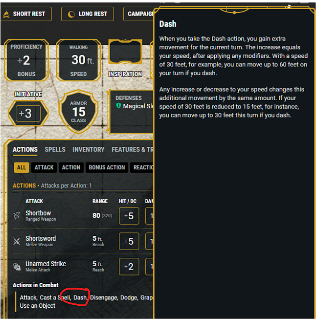 But DnD Beyond has virtually every word on the character sheet linked to the free Basic Rules of the game. So you don’t have to grab a book. You don’t even have to open a new browser window. All you have to do is click the word.